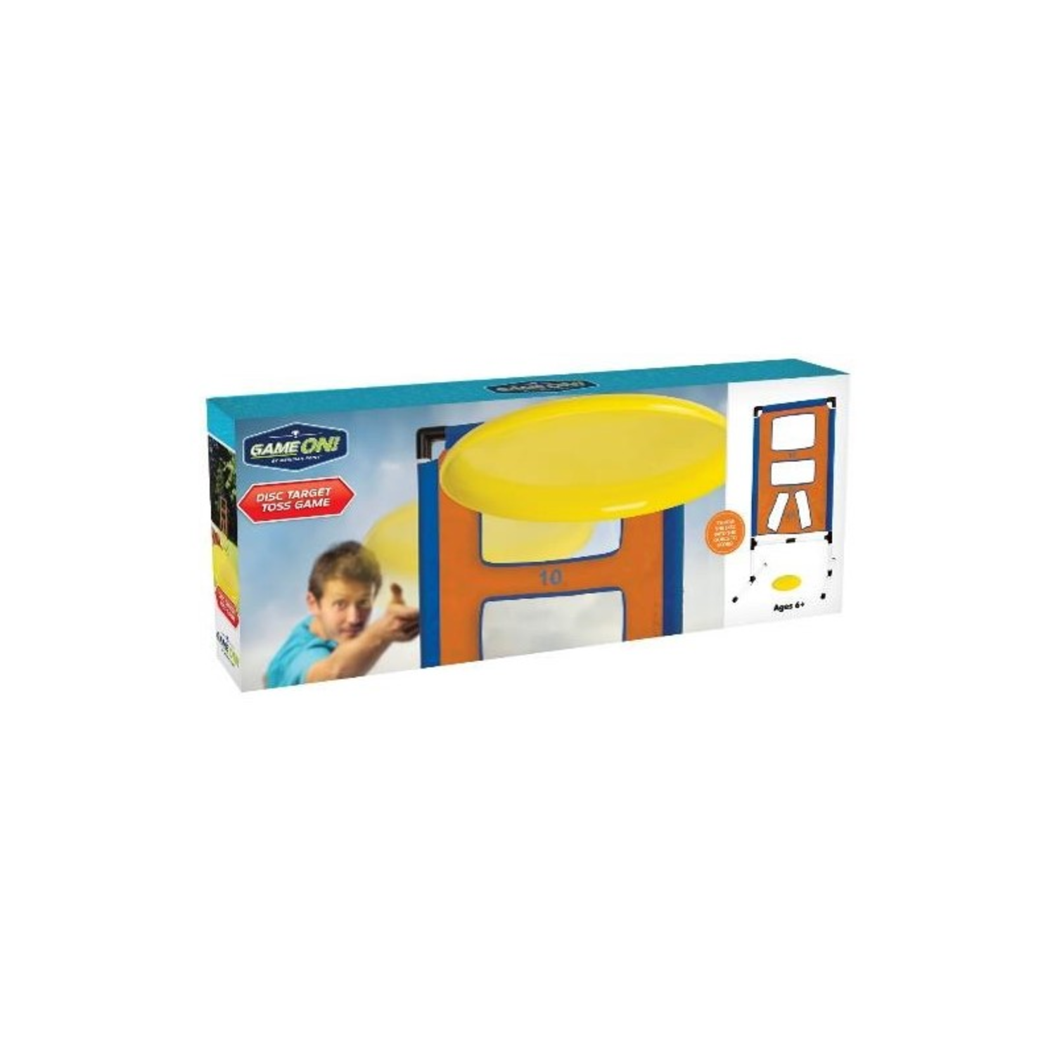 Select a throwing distance and toss the disc through one of the four goals to score Includes 1 frisbee and 4 goal standing target Collapsible game sets up in minutes and folds Down for compact storage or transportation Assembled Target: 40”H Frisbee: 8” Round