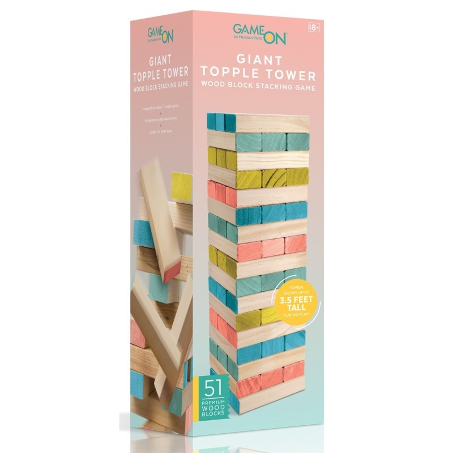 Introducing the Giant Topple Tower, the ultimate game of skill for all ages! With 51 jumbo stackable blocks made from durable high-quality wood, this classic game grows up to 3.5 feet tall during play. Whether you're playing one-on-one or in teams, the excitement never ends. The wood block dimensions of 5.75L x 1H x 1.94W (in.) ensure a sturdy and challenging experience every time. Get ready to topple and triumph with giant topple tower!