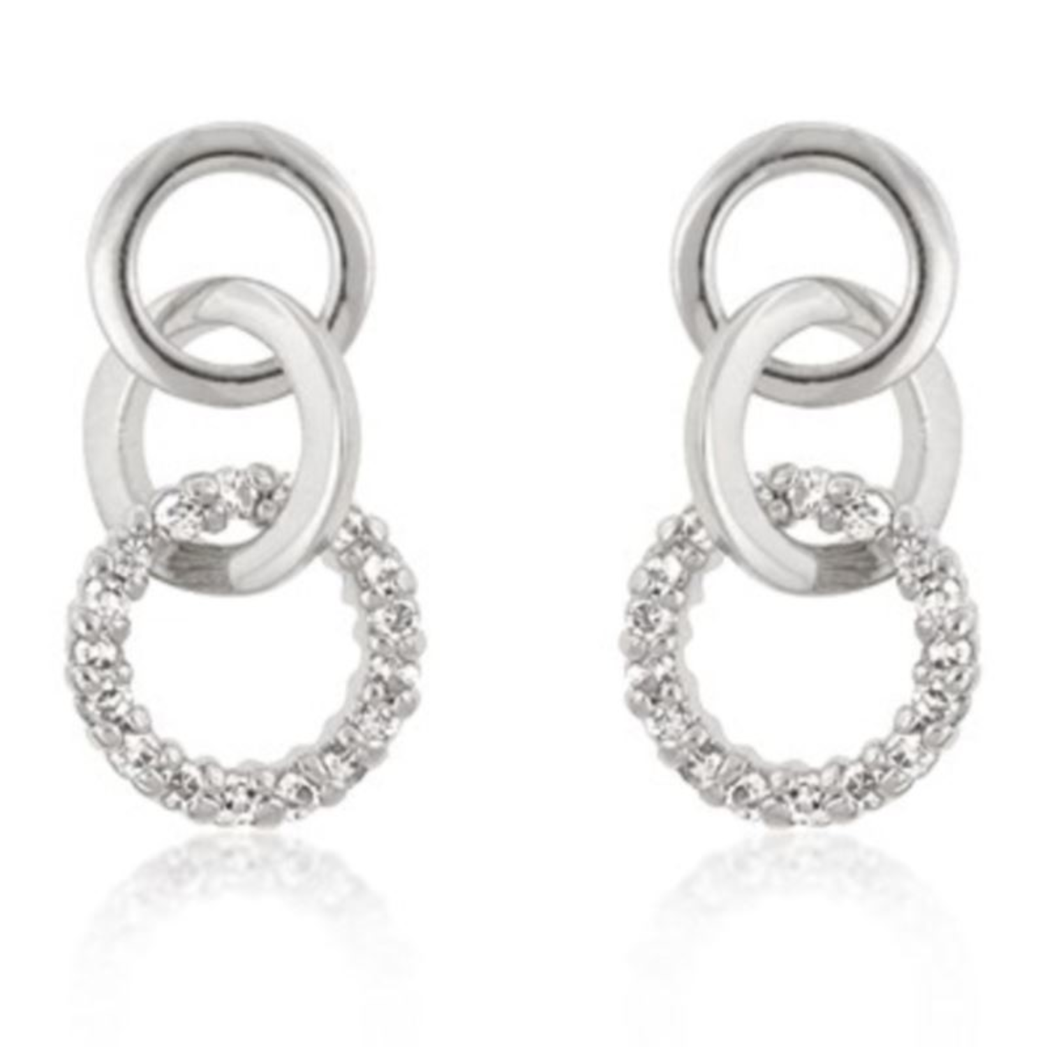 Dressed up or down, the possibilities are endless. Accessorize on its own or with its matching pendant too. Silver tone hooplets with glistening cubic zirconia disc will add just the right amount of sparkle. Earrings measure approximately 0.75' long by 0.4' wide. Rhodium plated. Standard post backing. Each earring contains approximately .34TCW Cubic Zirconia.