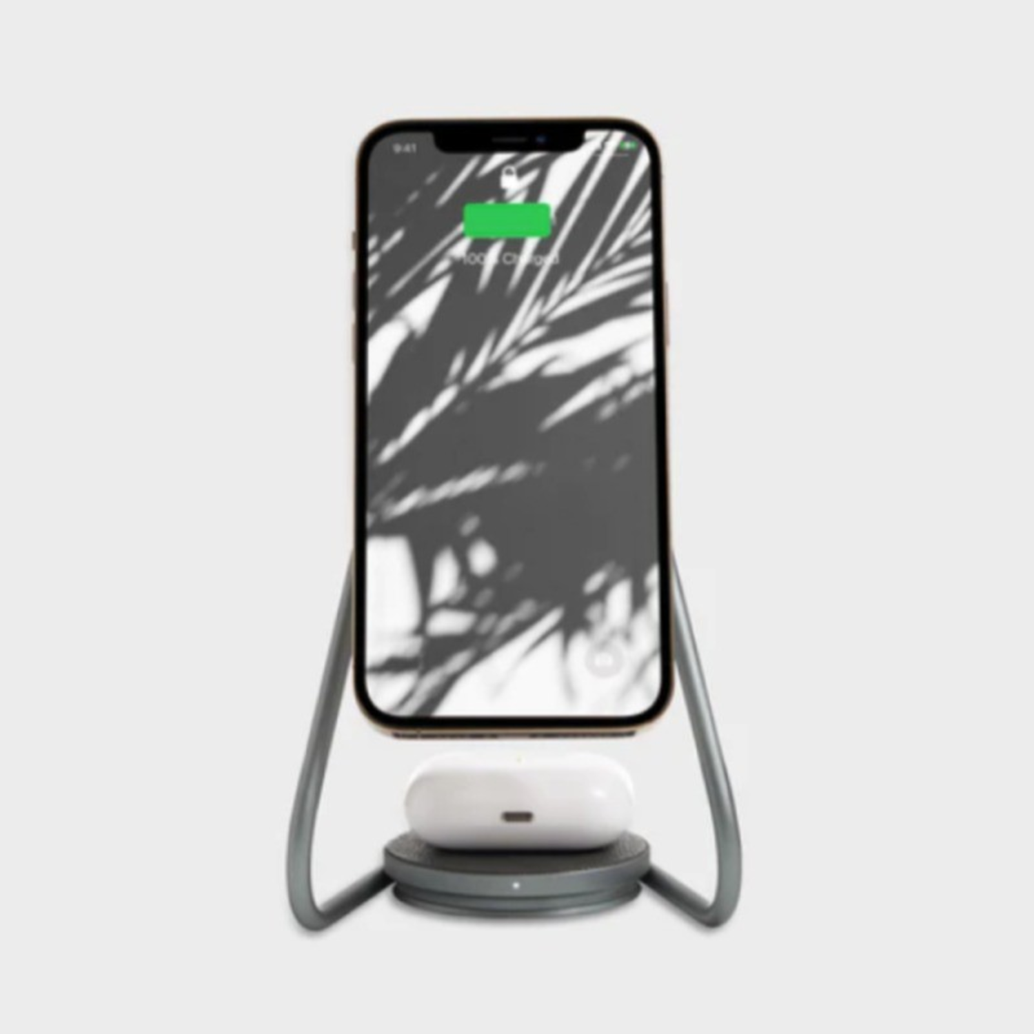 "The perfect accessory for an iPhone and AirPods user. Magnetically snap-on your iPhone 12/13/14/15 on the charging stand, and place your wireless charging AirPods on the base. This unique, sleek design, inspired by home decor, works best on your desk or bedside.