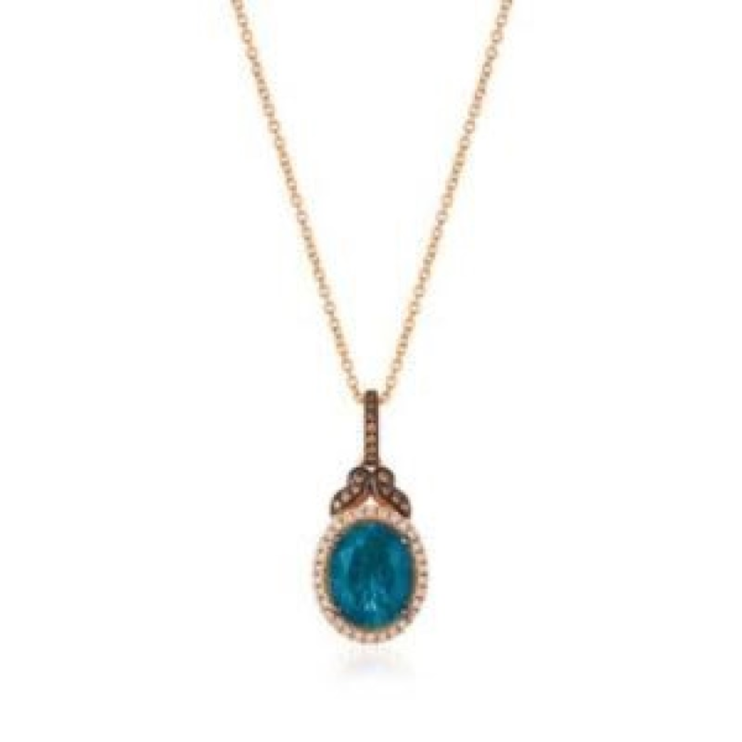 Le Vian Chocolatier® Pendant featuring 3 cts. Deep Sea Blue Topaz™, 1/15 cts. Chocolate Diamonds®, 1/8 cts. Vanilla Diamonds® set in 14K Strawberry Gold®