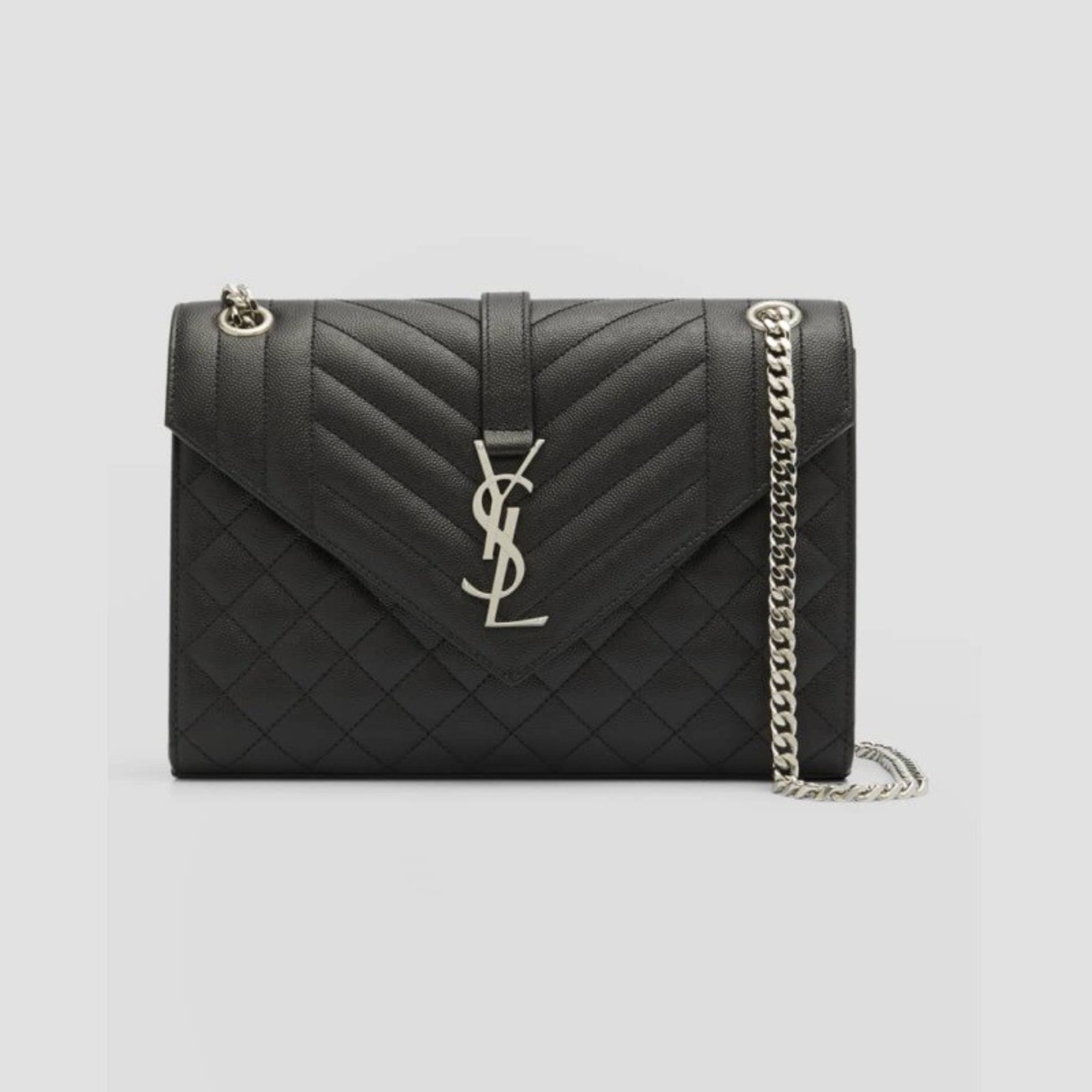 ENVELOPE TRIQUILT MEDIUM SHOULDER BLACK, SILVER HARDWARE